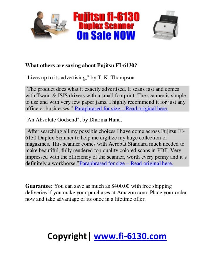 Fujitsu Fi-6130 document management scanner, Fujitsu Fi-6130 customer Driver download: Fujitsu Fi-6130 drivers 1 John Gilmour, Apex Cylinders The scanner itself is great - Fujitsu make the best sheet-fed desktop scanners I think